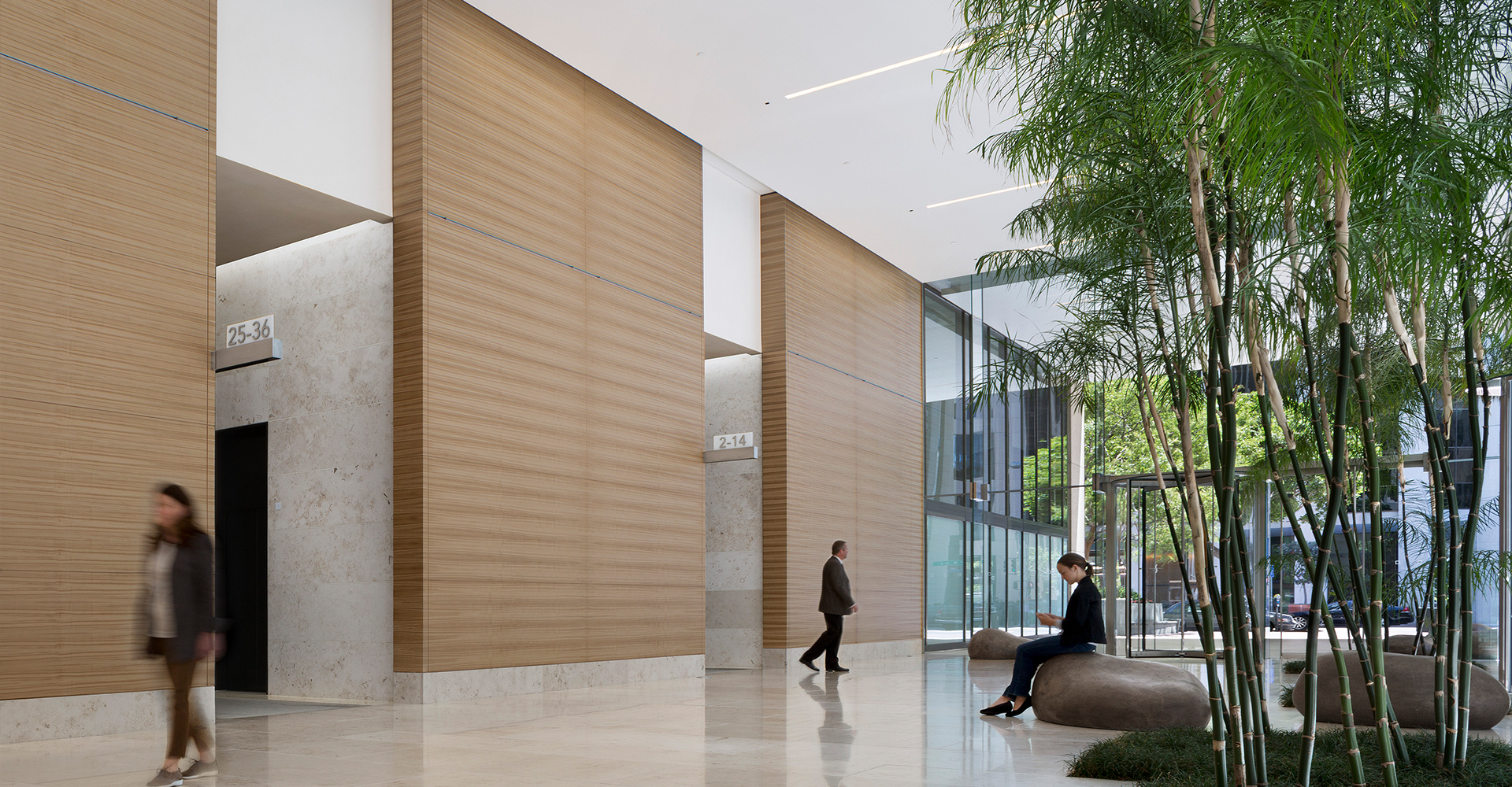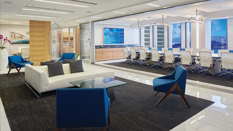 50 California Street is located in the heart of San Francisco’s Central Business District, at the junction of California and Davis Streets. As convenient as it is prestigious, the building is steps away from all forms of public transportation including BART, Muni, the Marin, Solano, and Alameda County ferries, all Bay Area bus lines, and the historic California Street Cable Car. Fine restaurants, internationally renowned hotels, spacious parks, and a wide variety of retail shops are all within easy walking distance. Welton Becket & Associates designed the building, which features vertical precast concrete columns with opaque spandrel and clear glass panels. In partnership with MetLife, we completed a lobby renovation in 2015, transforming it into a bright, airy and contemporary experience with an expansion featuring frameless glass walls to let the light flood in and the finest finishes of Jura limestone, olive ash wood paneling, and millwork.